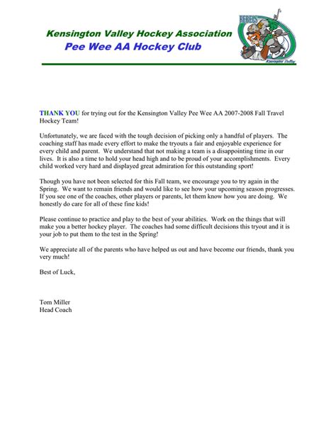Read Online sample letter for not making a team Paperback